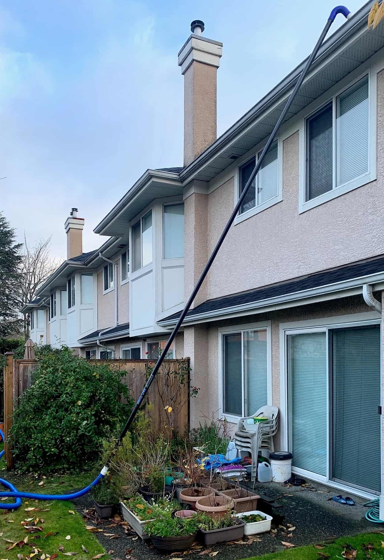 We provide advanced vacuum-based gutter cleaning services using industry-leading equipment specifically engineered for professional gutter cleaning. Our system is designed to remove debris completely, not just loosen it — delivering results that traditional methods and low-grade vacuums simply cannot match. We are one of the only companies in the Lower Mainland using top-tier, professional-grade gutter vacuum systems built exclusively for this purpose. Unlike competitors who rely on modified car shop vacs that lack proper suction and airflow, our equipment has the power and capacity to clean gutters thoroughly and efficiently — the first time. Our gutter cleaning process uses high-powered commercial vacuum systems capable of cleaning gutters up to 45 feet from the ground, allowing us to service most buildings without ladders or roof access, dramatically improving safety and efficiency.